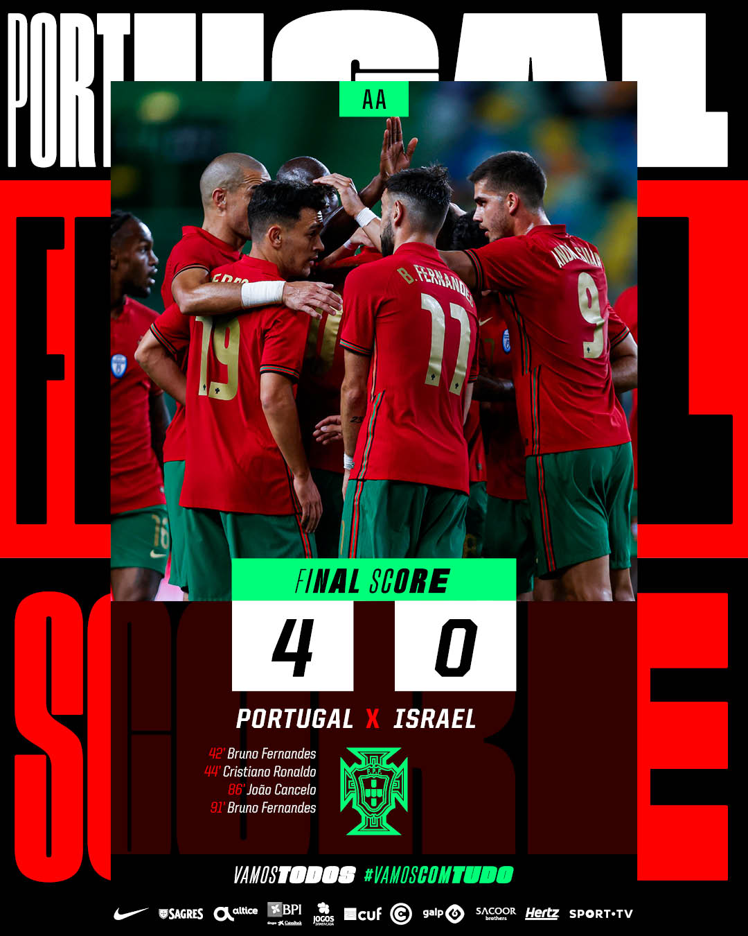 Portugal were unbeaten against israel in the last 4 meetings at home with three wins and a israel have always scored a goal against portugal in their last 3 games in the last two decades. O lateral luís martins cruza do lado esquerdo, rasteiro, e surge ivan cavaleiro a rematar em habilidade. Odds apostas portugal israel (09/06/21). Bruno fernandes (left) was instrumental in portugal's win against israel with two goals and an assist for cristiano ronaldo. 31' boa jogada de portugal.